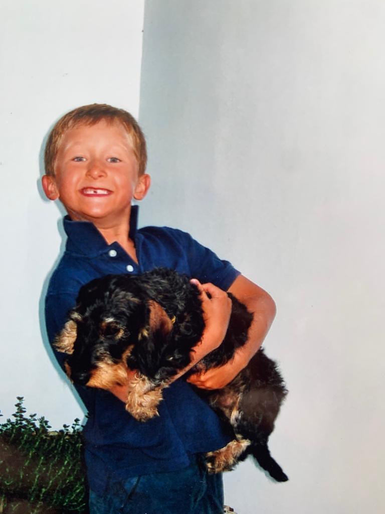 « Dès mes 5 ans, j'ai eu la chance de partager ma vie avec un adorable teckel nommé Athos, un poil dur nain qui devint le 4e mousquetaire d'une famille de trois garçons.