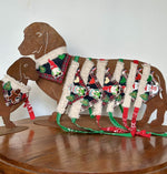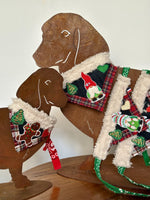 L’assemblage brut des matières, des couleurs, des coutures laisse place à des imperfections qui en font le charme. Nos teckels Lafayette, Violette et Martini les portent avec fierté.